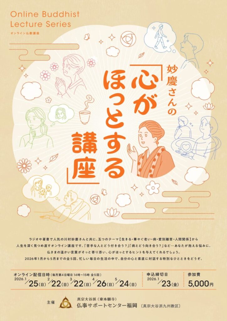 オンライン仏教講座 妙慶さんの「心がほっとする講座」の開催について